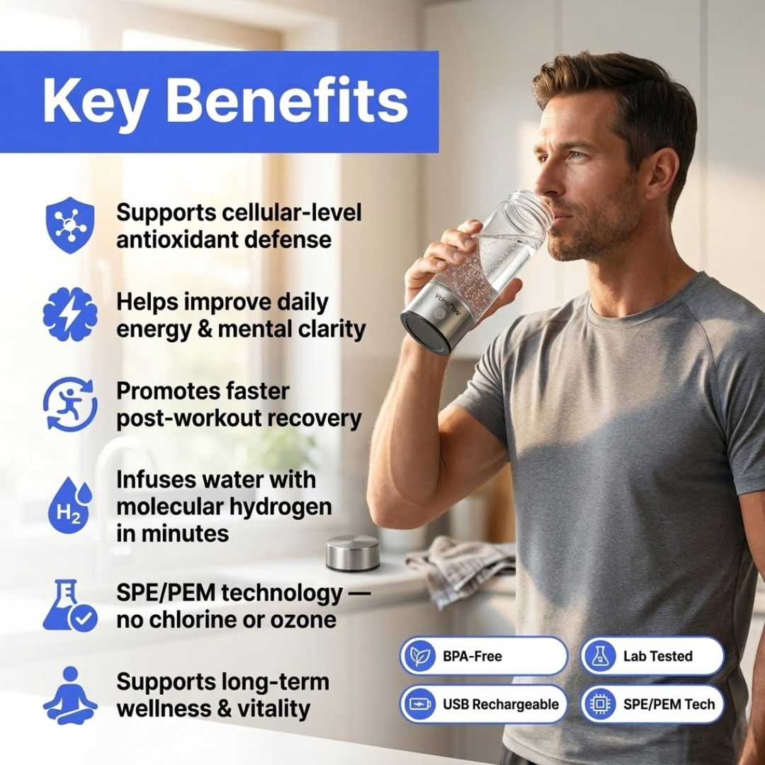 ✔️ Generates hydrogen-rich antioxidant water in 3 minutes